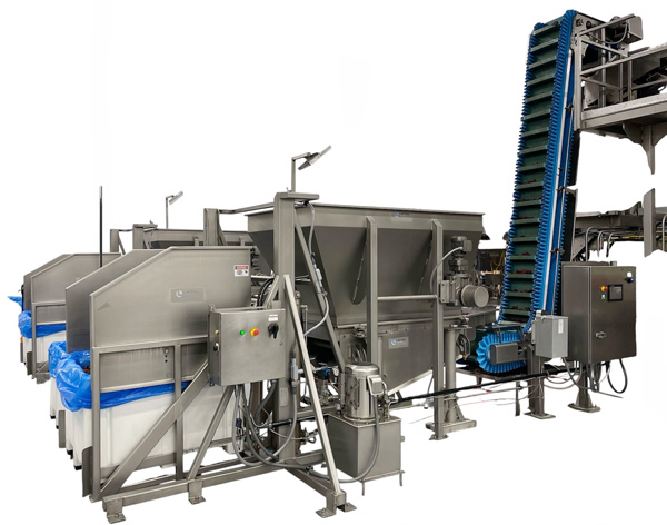 Layton Mfg. offer a wide variety of tote dumpers from basic stand alone units to our lift & seal dumper that contains all of the product in the dump hopper. We have manufactured multiple dumper integrated in to mixed vegetable blending lines and roll-back dumpers to feed scale hoppers. We also fabricate high lift & dump units that elevated the tote up to 20 feet before dumping.