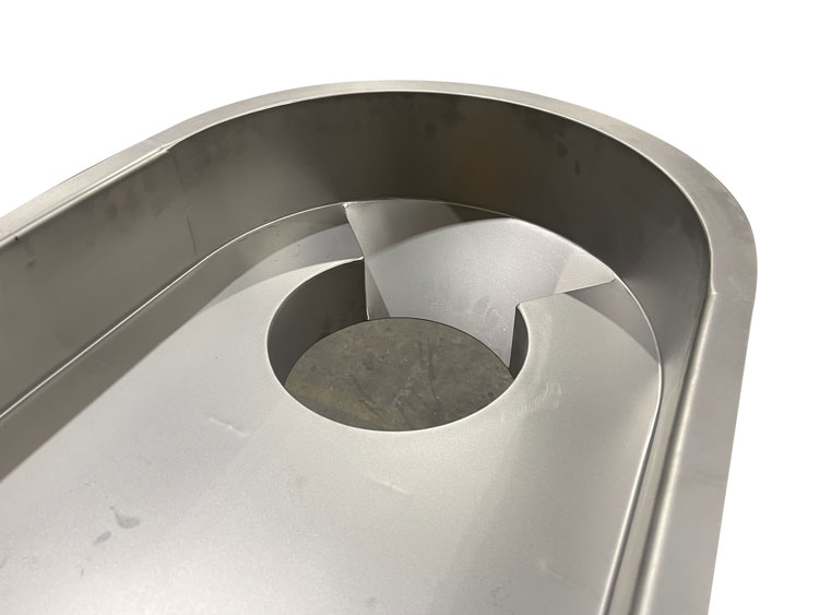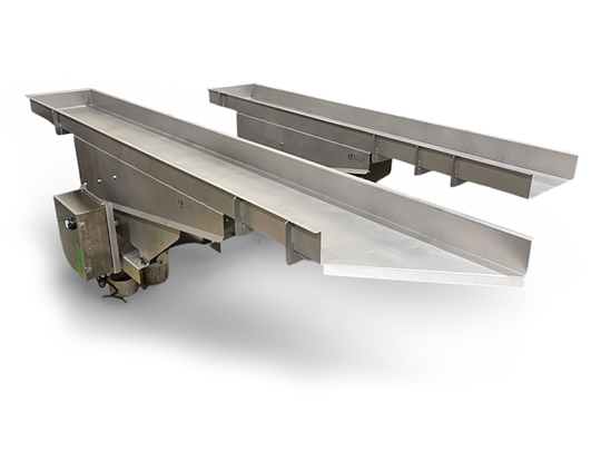 The vibratory conveyor with one moving part construction.